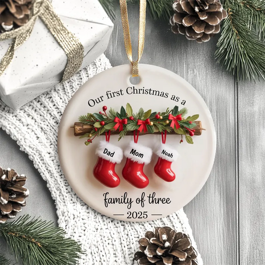 Personalized Family of Three Ceramic Christmas Ornament 2025