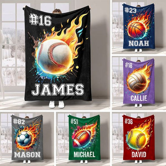 Personalized Flaming Basketball Football Sports Ball Design Blanket