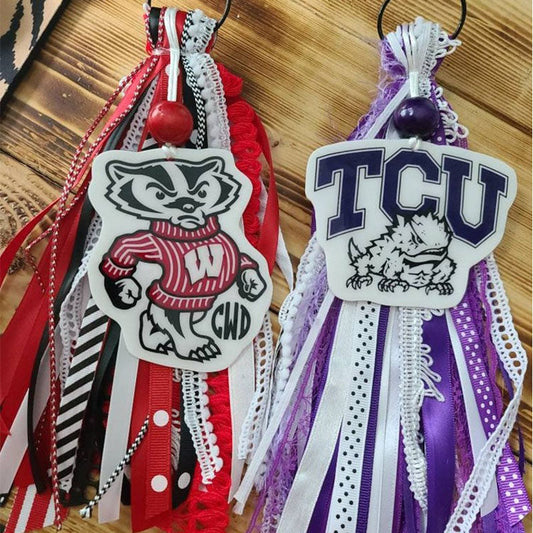 Custom backpack keychains, football accessories, gym bag tags, team spirit tags