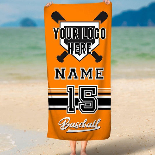 Custom Baseball Team LOGO Beach Towel, Baseball Player Gift