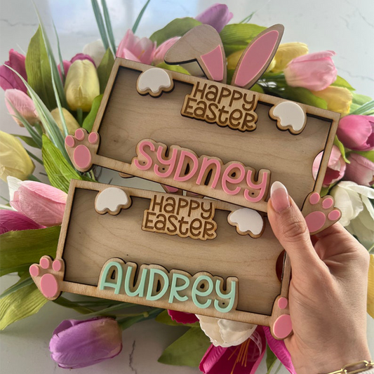 Bunny Ears Bow Name Tag | Easter Basket Tag