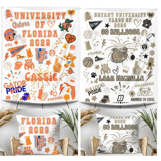 Bed Party Blanket Custom College Blanket Graduation Gift Dorm Pillow Graduation Gift