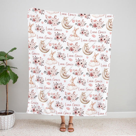 Bunny Rabbit Moon Cloud Blanket, Toddler Girl Bunny Easter Blanket