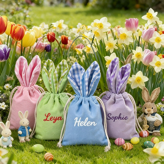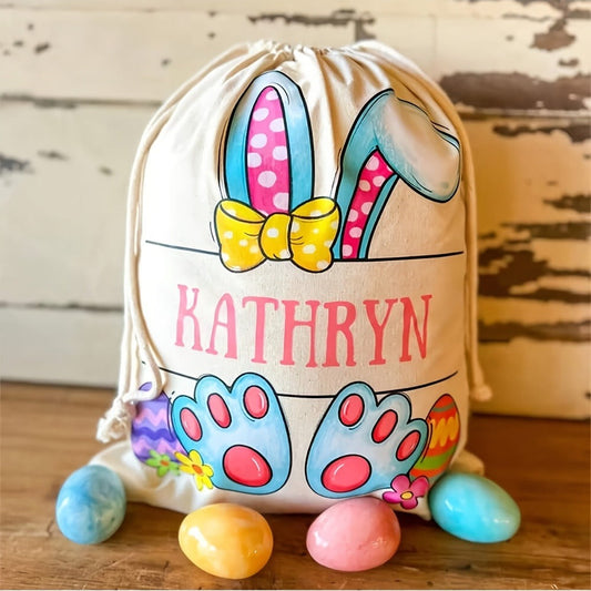 Personalized Name/Text Bunny Rabbit Easter Egg Hunt Treat Bag