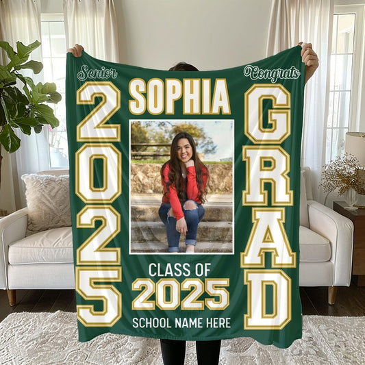 Personalized Photo & School Logo Class of 2026 Blanket Graduation Gift