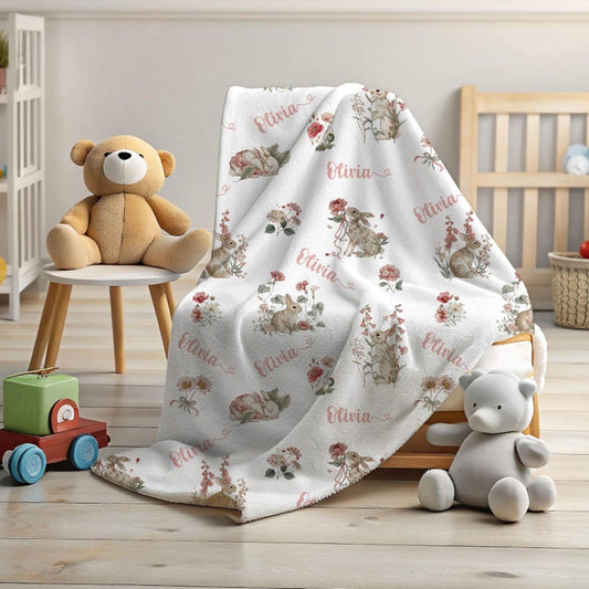 Personalized Rabbit Custom Kids Name Easter Blanket