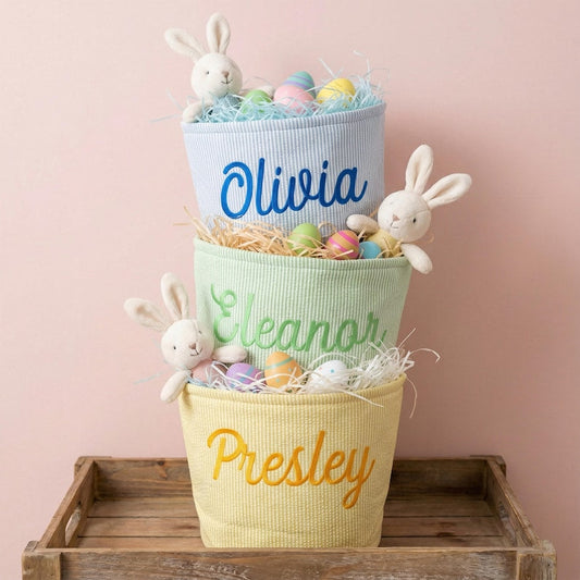 Personalized Seersucker Easter Basket, Embroidered Name Kids Basket