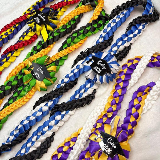 Personalized Tri-Color Graduation Lei, Custom 3 Ribbon Colors, Class of 2026 Senior Gift