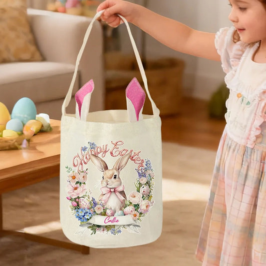 Personalized Wreath Cartoon Rabbit Easter Basket