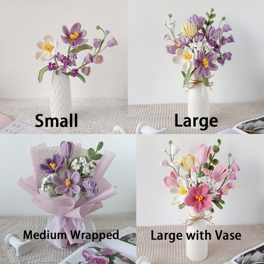 Crochet flowers bouquet, Tulip, Pink, white, purple, blue, everlasting, Graduation, Birthday