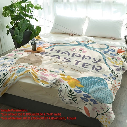 Custom Easter Bunny & Floral Print Flannel Blanket
