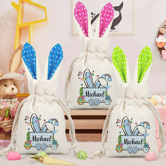 Custom Easter Bunny Sack - Personalized Rabbit Print Gift Bag with Name