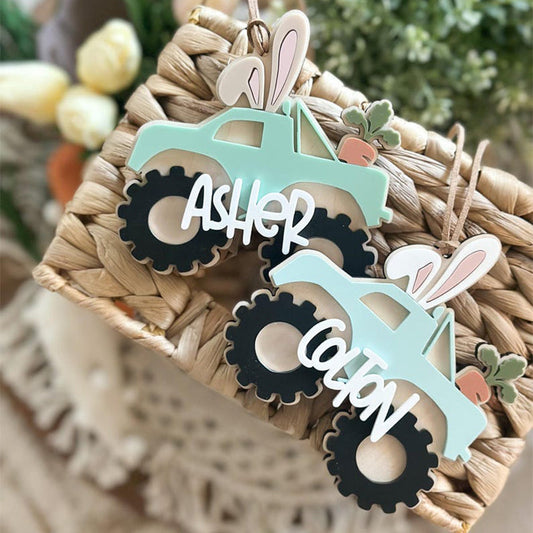 Monster Truck Keychain, Personalized Truck Bag Easter Tag