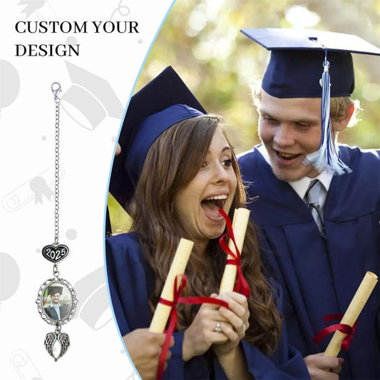 Graduation Tassel Charm with Angel Wings, Custom Graduation Cap Photo Charm