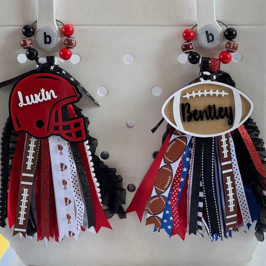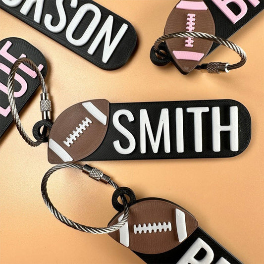 Custom backpack keychains, football accessories, gym bag tags, team spirit tags