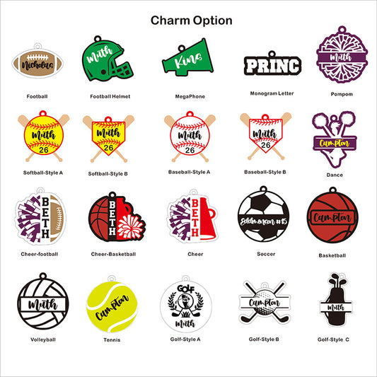 Football Softball Baseball Soccer Basket Bag Tassel and Charm, Bookbag tag