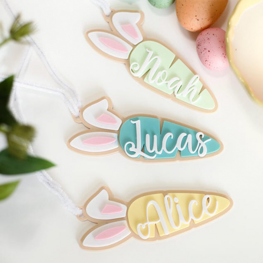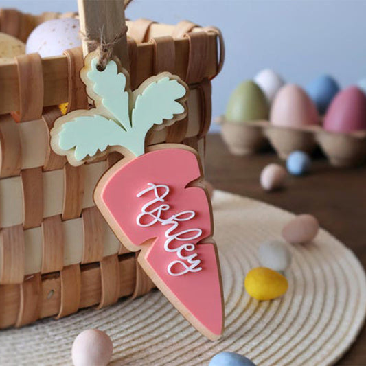 Personalized Easter Basket Name Tag: Acrylic Carrot Charm for Kids