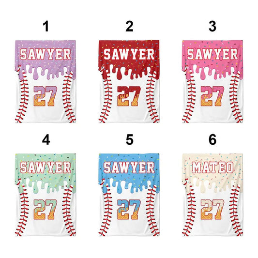 Custom Baseball Drip Blanket, Personalized Ice Cream Drip Baseball Blanket
