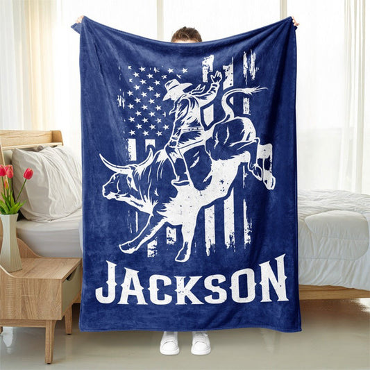 Personalized Rodeo Rider Blanket - Custom Name Bull Rider Fleece Sherpa Blanket