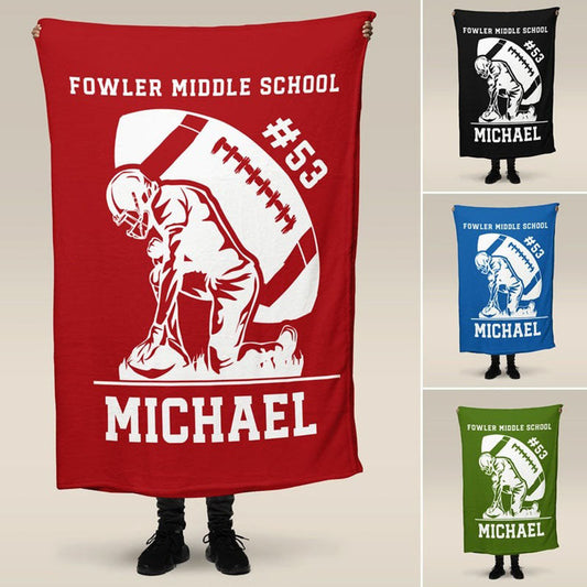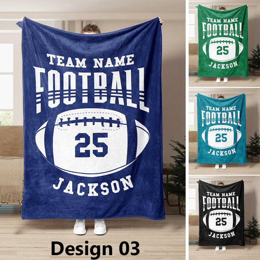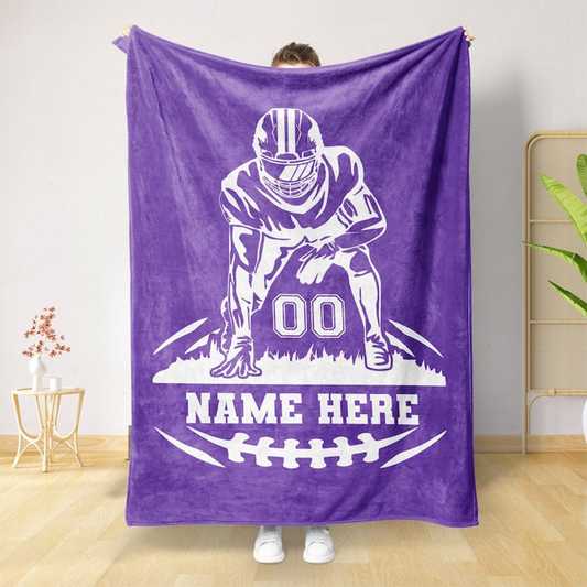 Personalized Football Blanket, Custom Name Gift Idea for Football Player