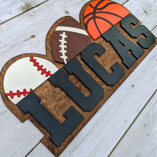 3D Custom Kids Room Decor, Football Wooden Name Sign