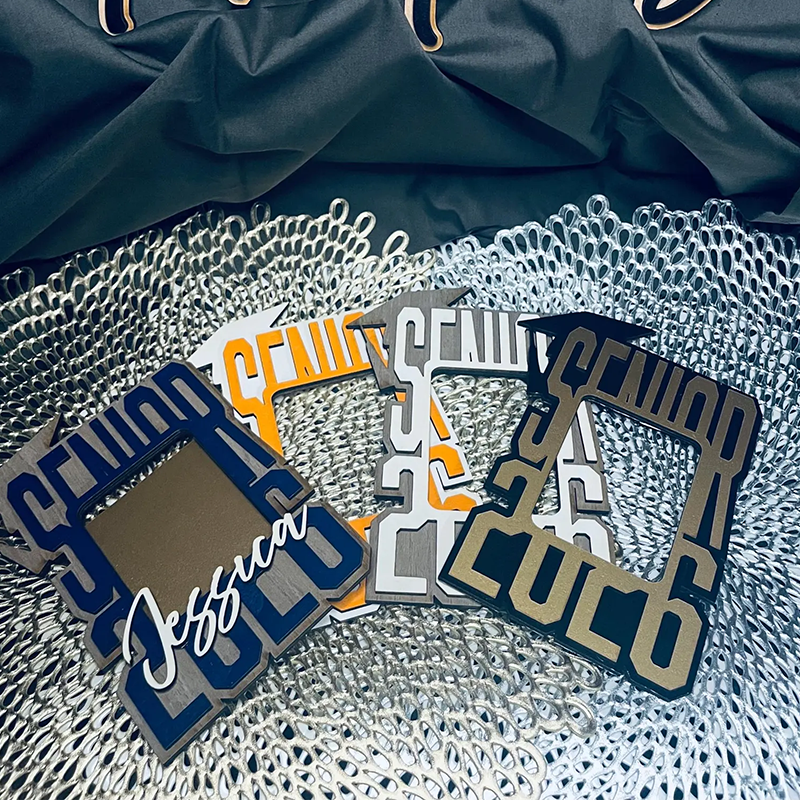 Celebrate the Class of 2026 with a personalized Senior photo frame—the perfect graduation keepsake for high school seniors! These custom frames are designed with bold lettering, vibrant school colors, and the option to add a name (or not) for a unique touch.