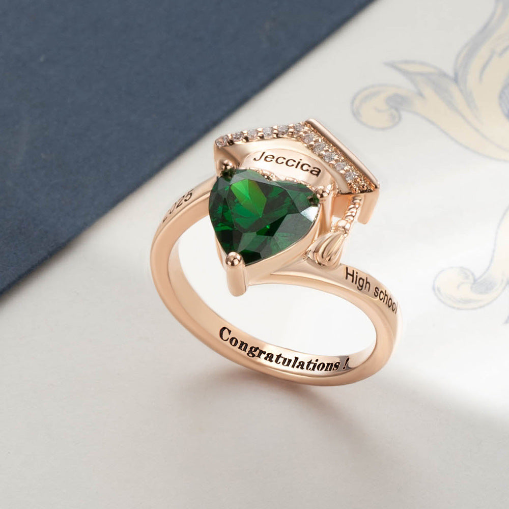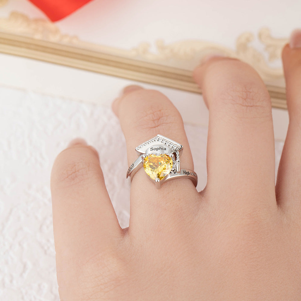 Bachelor's hat ring Women's customizable class ring Graduation Gift