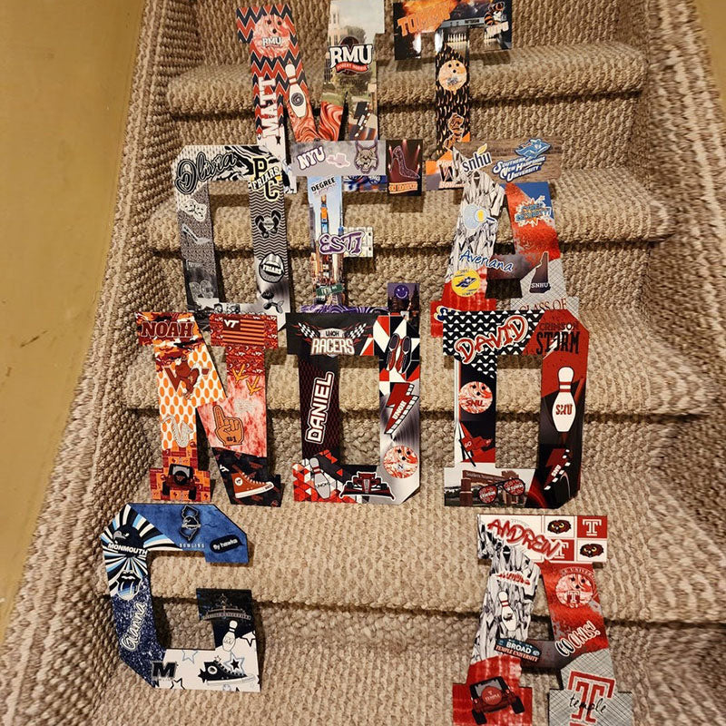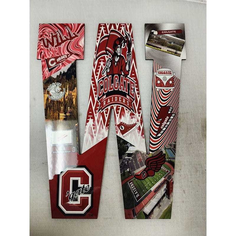 What better way to celebrate your child’s acceptance into a college than with their initial letter and the college. Did you know these can also be used for birthday, going into a high school or vo-tech school, even the service. These are all custom cut on our laser and designed by us. Each letter is approximately 13″ in height and 1/8" thick