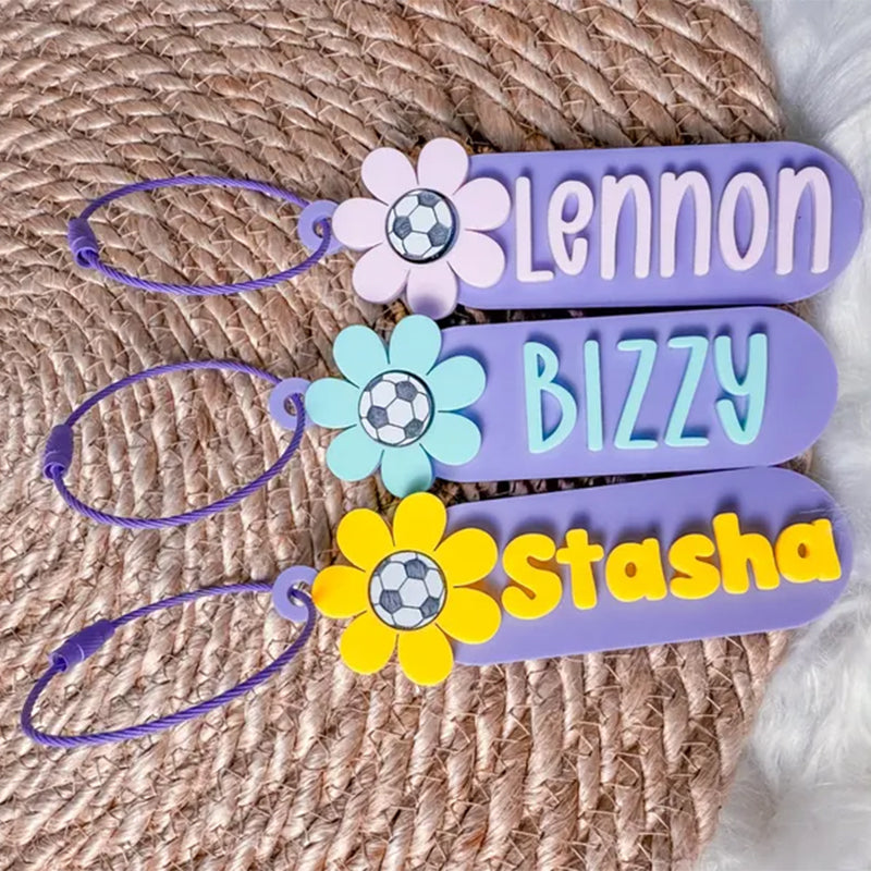 Backpack Tag or Keychain | Custom Name & Number | Acrylic Soccer Daisy Flower | Multiple Color and Font Options