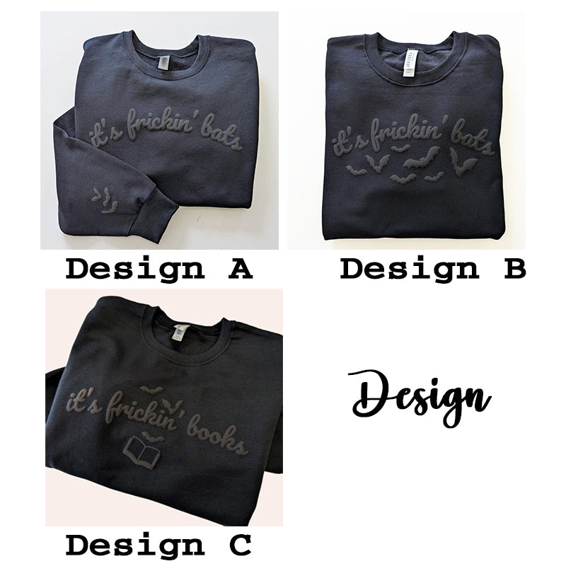 The perfect Halloween sweatshirt for book lovers! It's Frickin' Books puff sweatshirt with cute puffy bats flying out of a book. Shop this unique design printed on a sweatshirt, hoodie or tshirt.