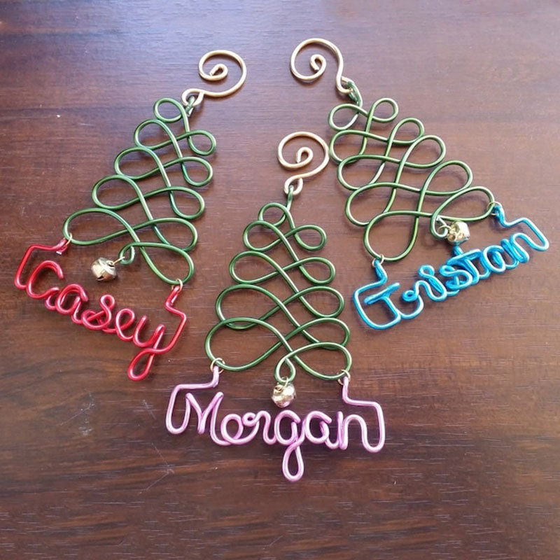 The ornament will vary by size depending on the length of the name. However, it will be about 4" in length. Also, the ornament is made of heavy duty aluminum wire