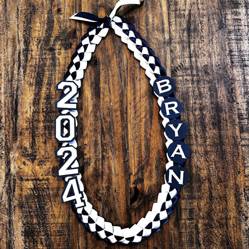 A beautiful 2 colored single lei attached with a graduation cap customized with your graduate's name and class year. They are perfect gifts for graduations, senior nights, or any other celebration. Each lei is made to order and colors are custom to fit your occasion.