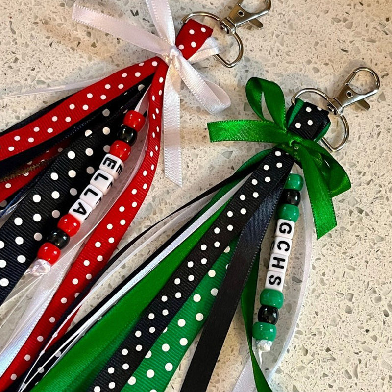 Personalized Ribbons will have the name in beads along with coordinating colored beads.