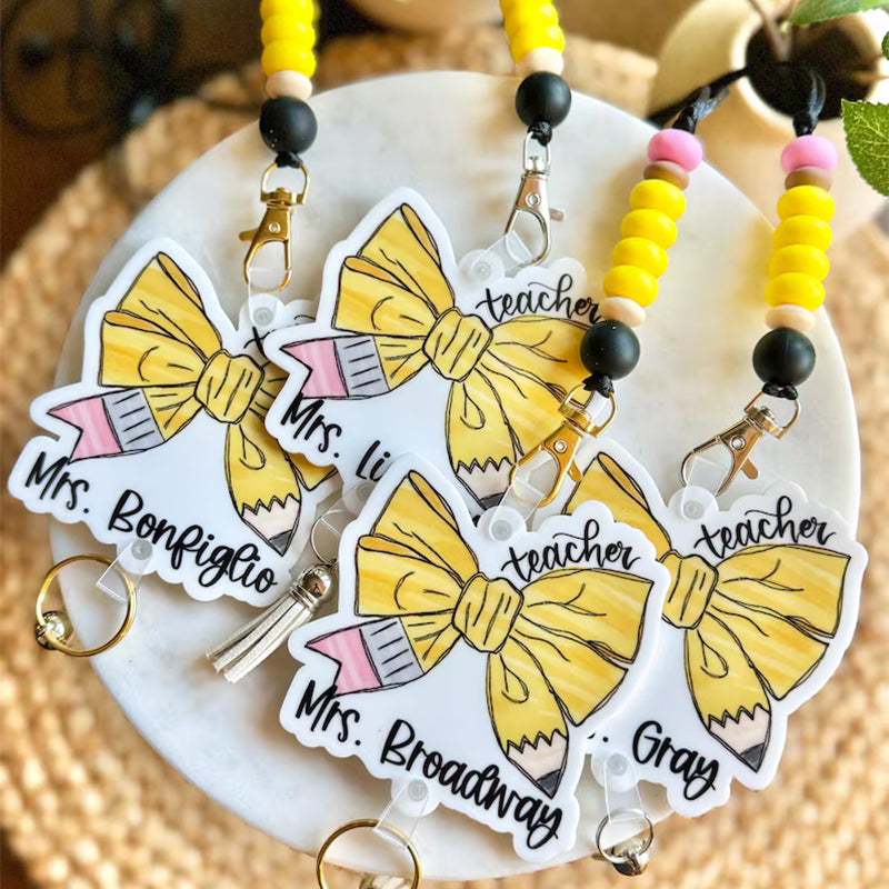 The most perfect teacher lanyard design! Pencil bow with name!