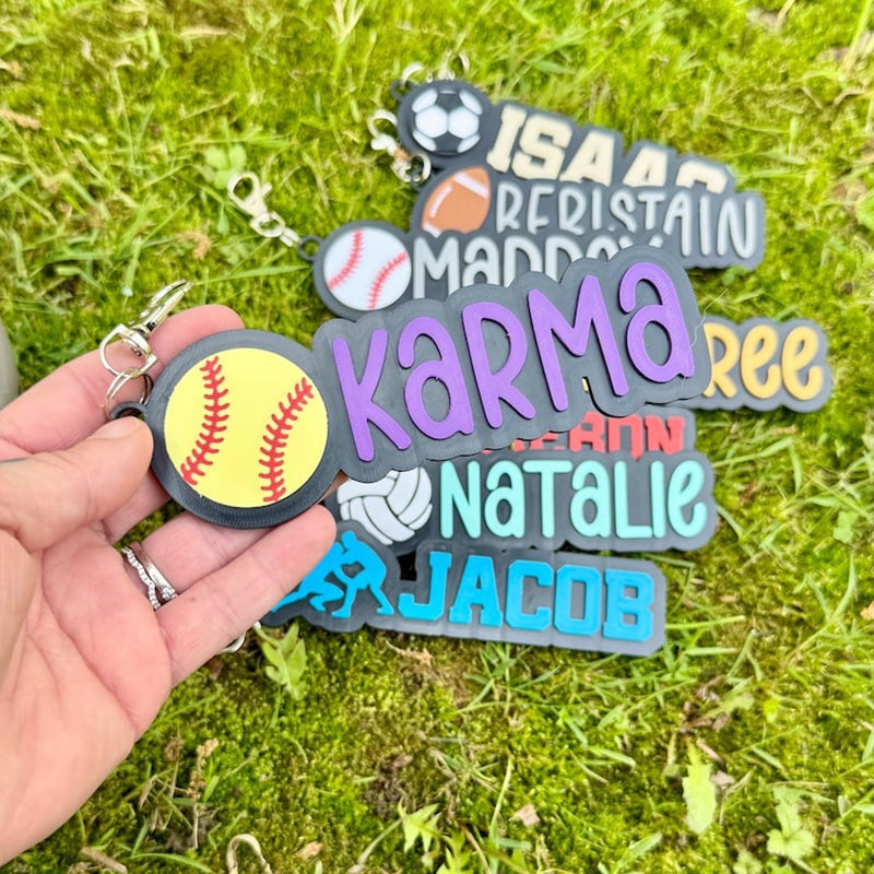 Softball Baseball Volleyball Football Dance Wrestling Track Soccer Cheerleading Personalized 3D Bag Tag Keychain